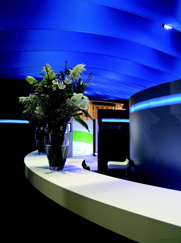 展會由著名設(shè)計(jì)公司dan pearlman Markenarchitektur GmbH 設(shè)計(jì),位于德國法蘭克福。設(shè)計(jì)理念:藍(lán)色配以黑色,鮮明而深遠(yuǎn),冷靜而不失生氣勃勃。通過整體的概念設(shè)計(jì)展臺全方位展示樂家品牌。